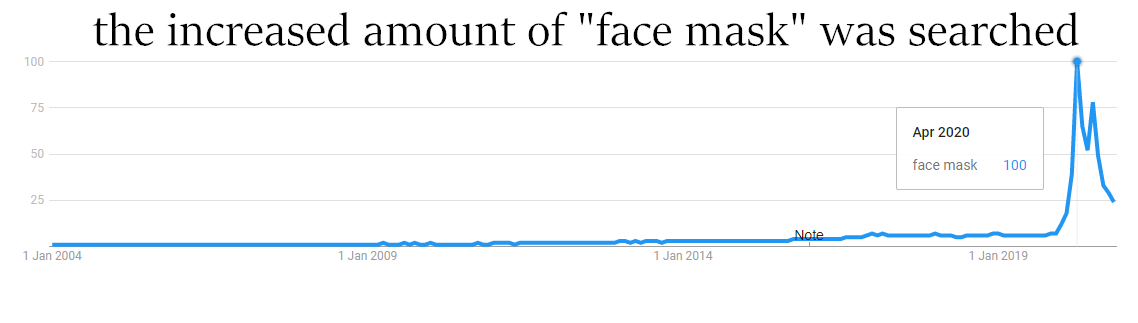 The word 'mask' is one of the most popular words in 2020. According to Google Trends, the amount that 'face mask' has been searched reached its highest in human history in April 2020.